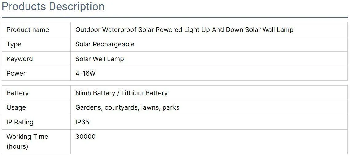 Solar Powered with 600mAh Nickel Battery, Plastic Fixture with Mounting Hardware, Suitable for Garden, Patio, Porch, IP44